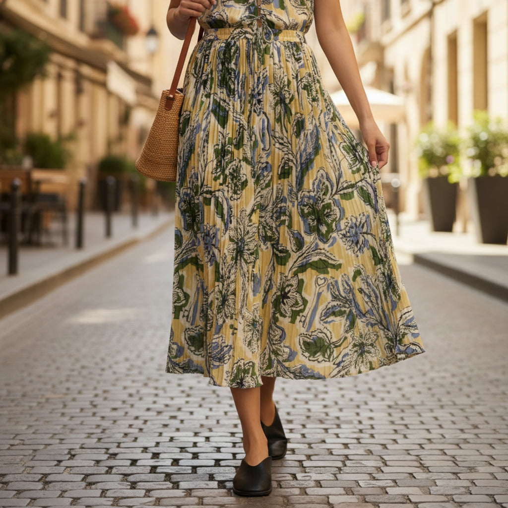🌸 Botanical Reverie: The Micro-Pleat Maxi Muse