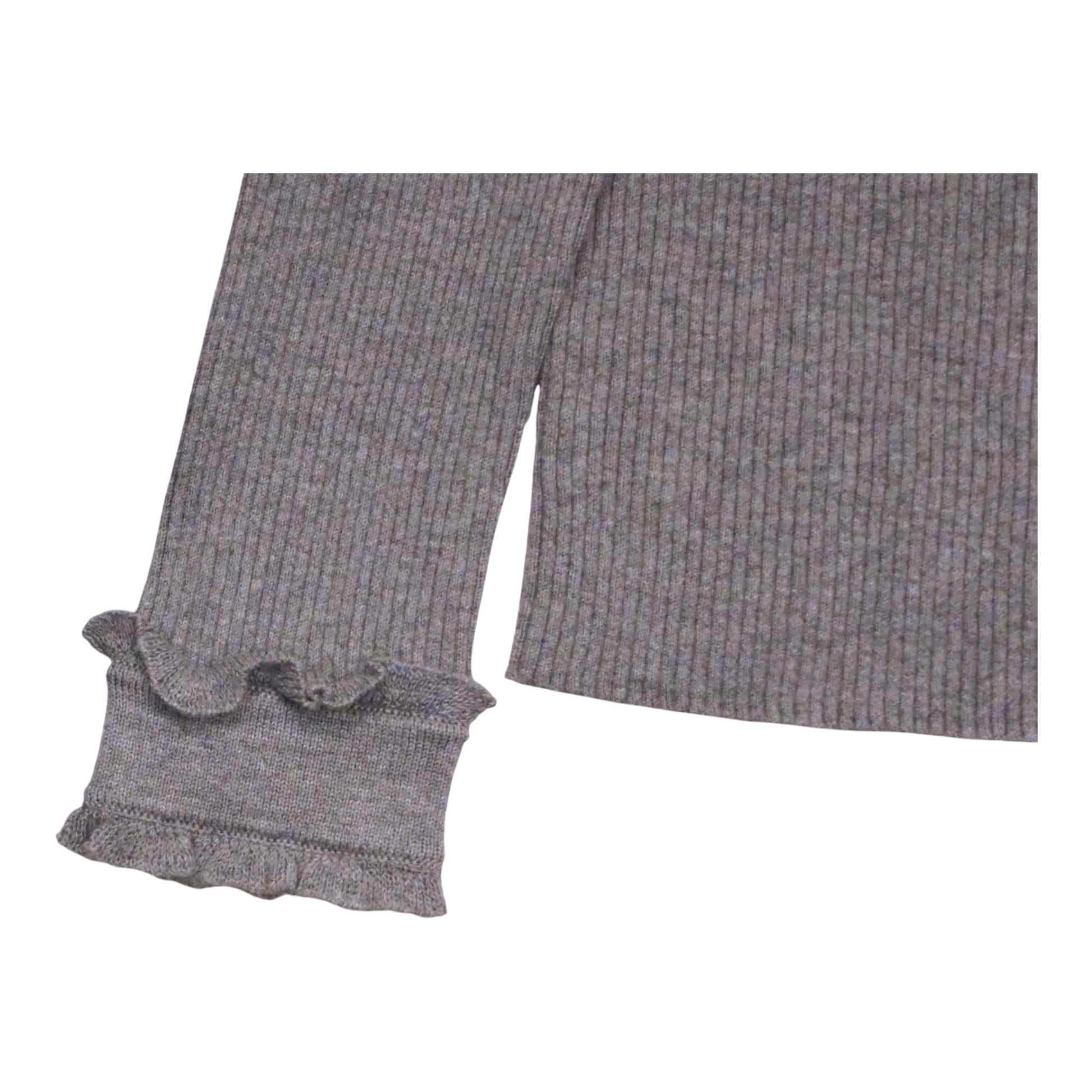 特徴: リブ編み、フリルデザイン、マットゴールドボタン