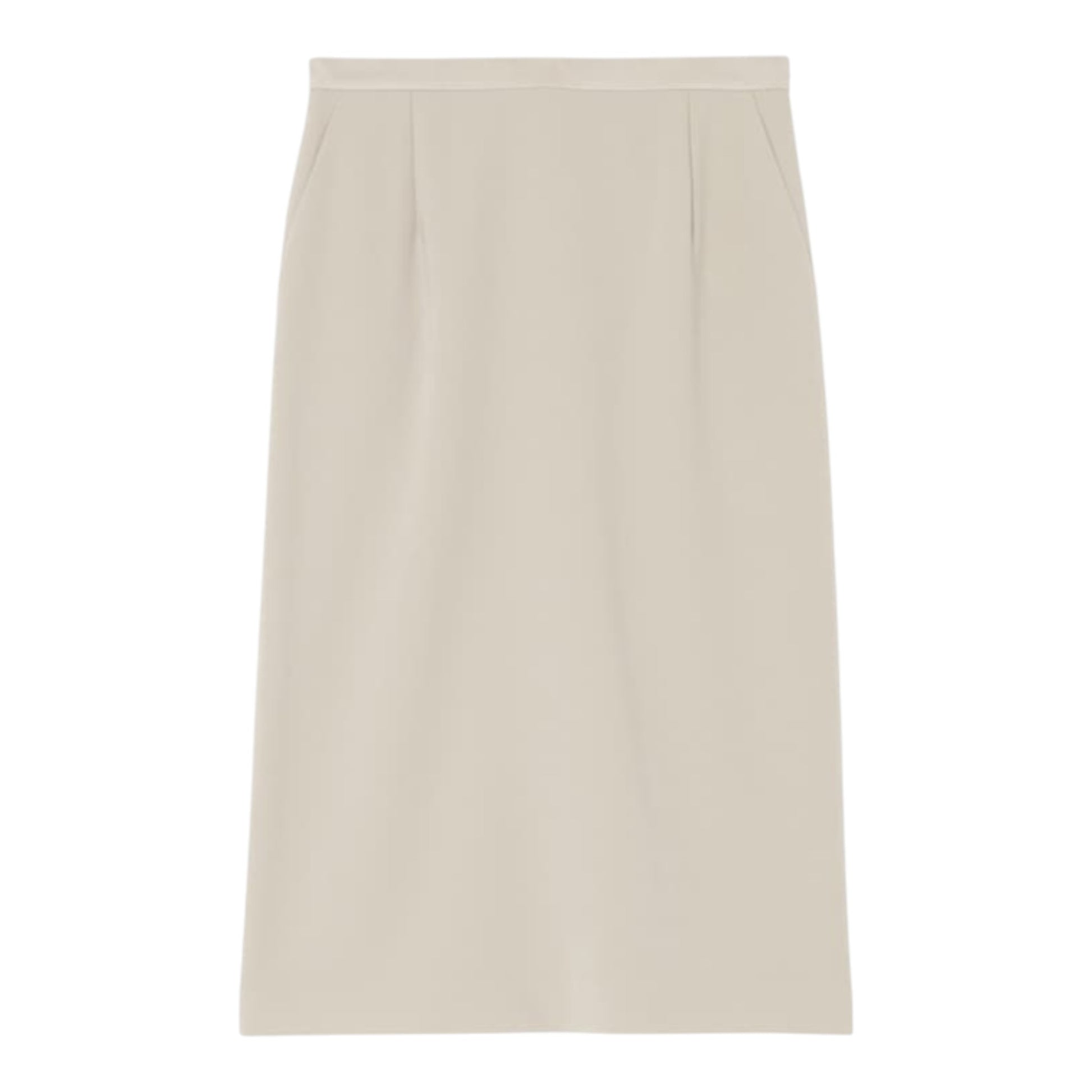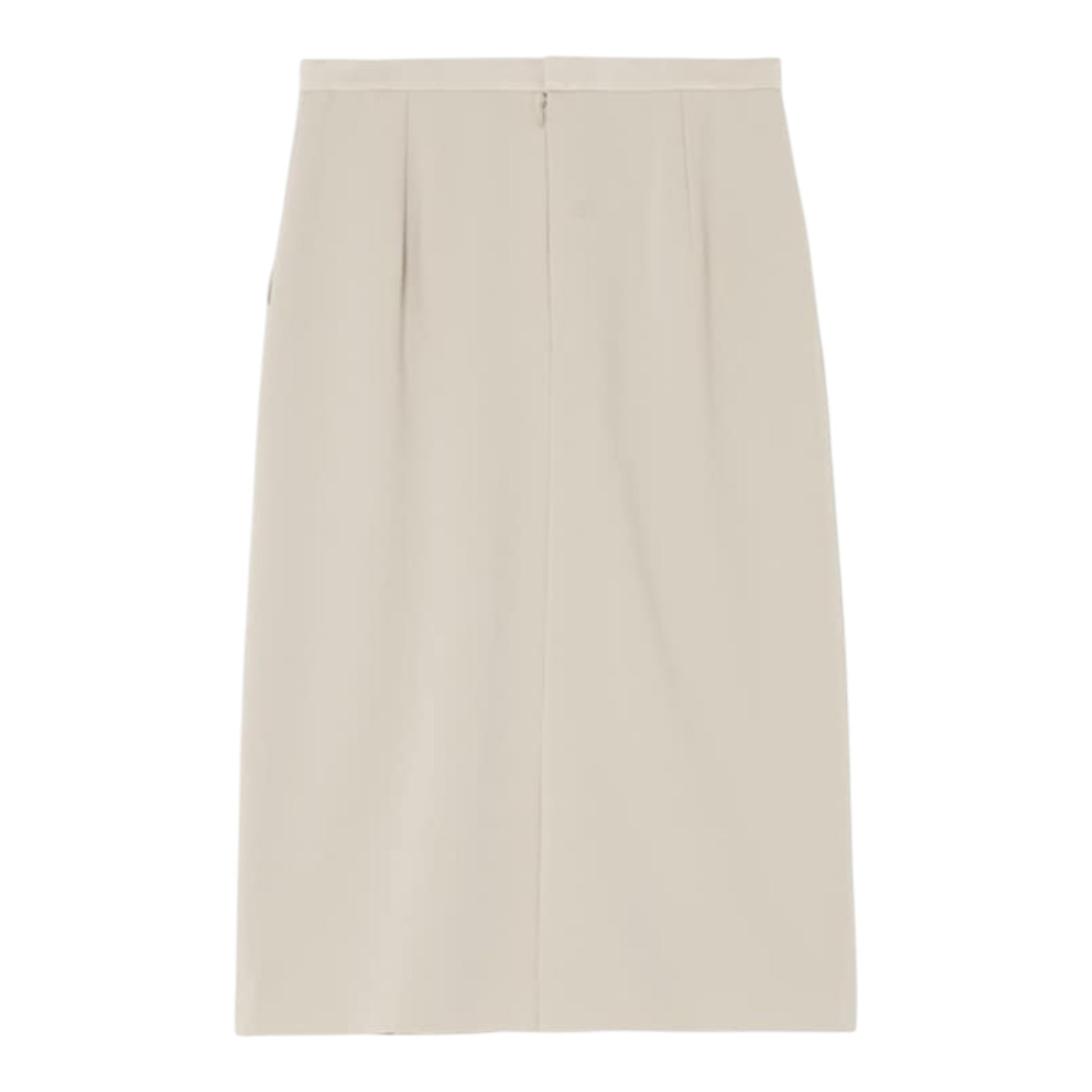 特徴: サテンウエストバンド、ミディ丈、バックジップ