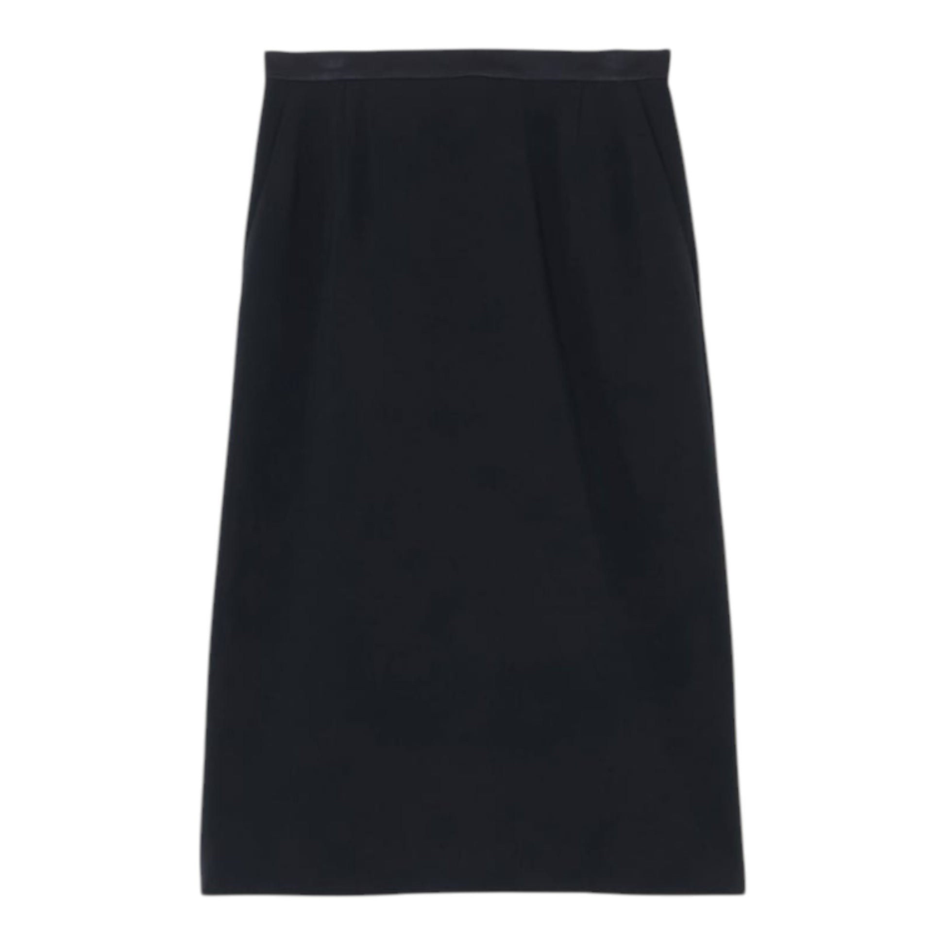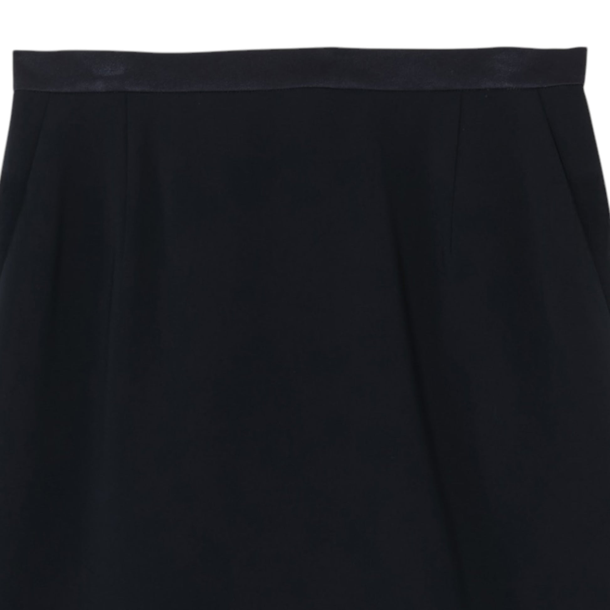 膝下のミディ丈と、すっきりと見えるセミタイトシルエットは、近年では珍しい正統派のデザイン。ウエストのサテンの切り替えが、さりげないアクセントになっています。
