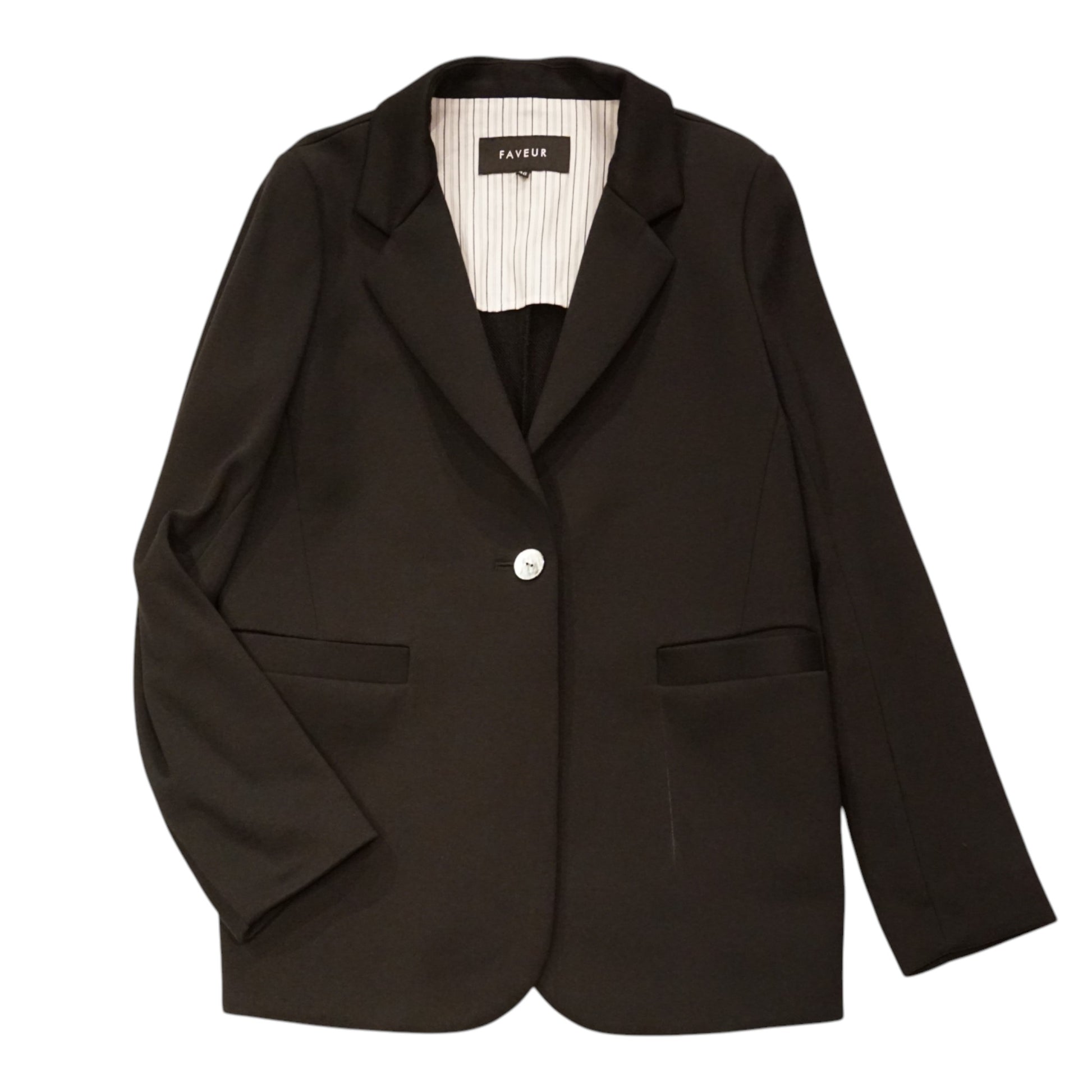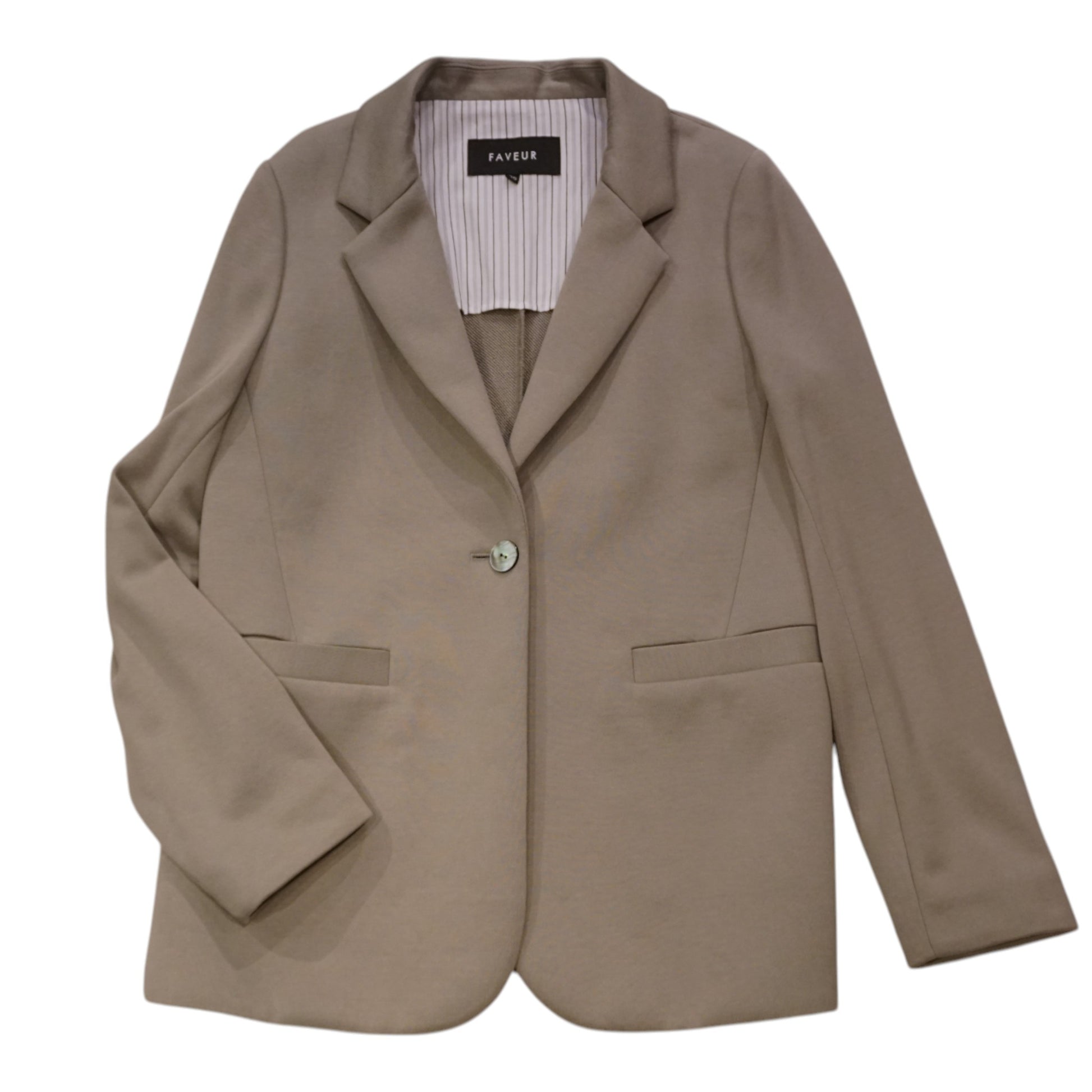 きちんとした印象とリラックス感を両立させた、FAVEURのスウェットテーラードジャケット。洗練されたデザインと、驚くほど快適な着心地が魅力の一着です。
