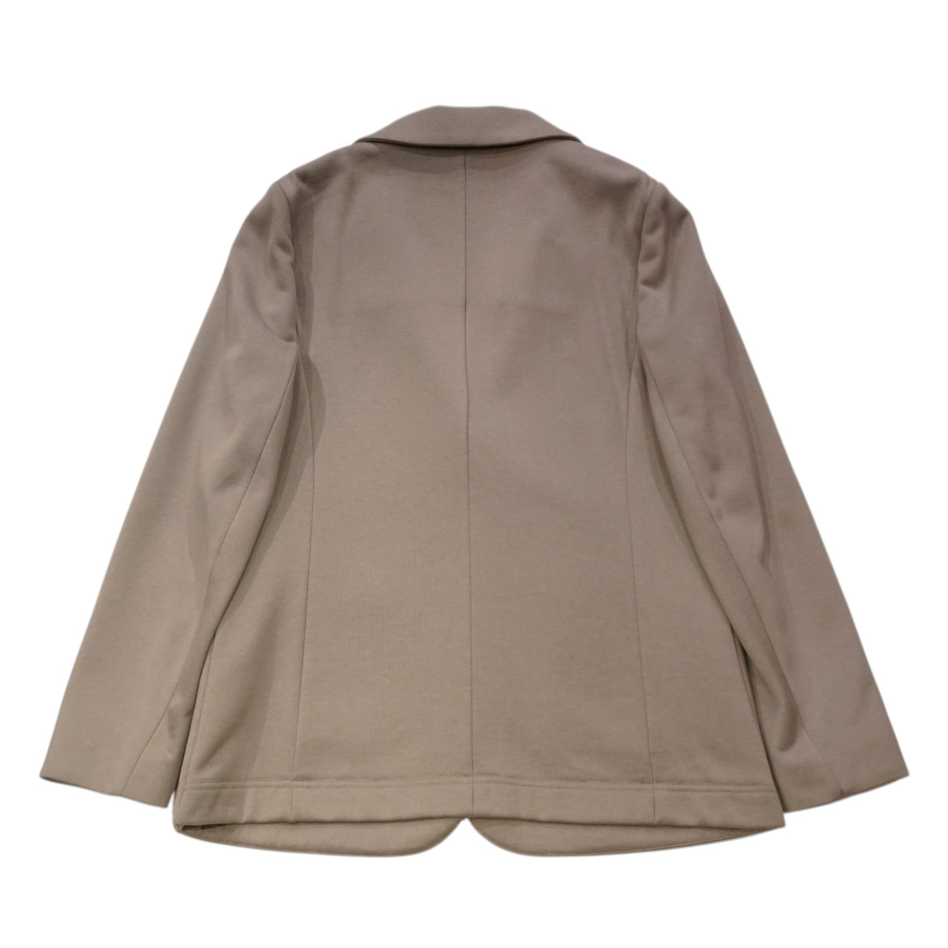 このジャケットは、表面はなめらかな生地、裏面はふんわりとしたパイル状のフレンチテリーでできた2重構造のスウェット生地で仕立てられています。しっかりとしたテーラードのラインがありながら、ジャージー素材ならではの柔らかな着心地が楽しめます。