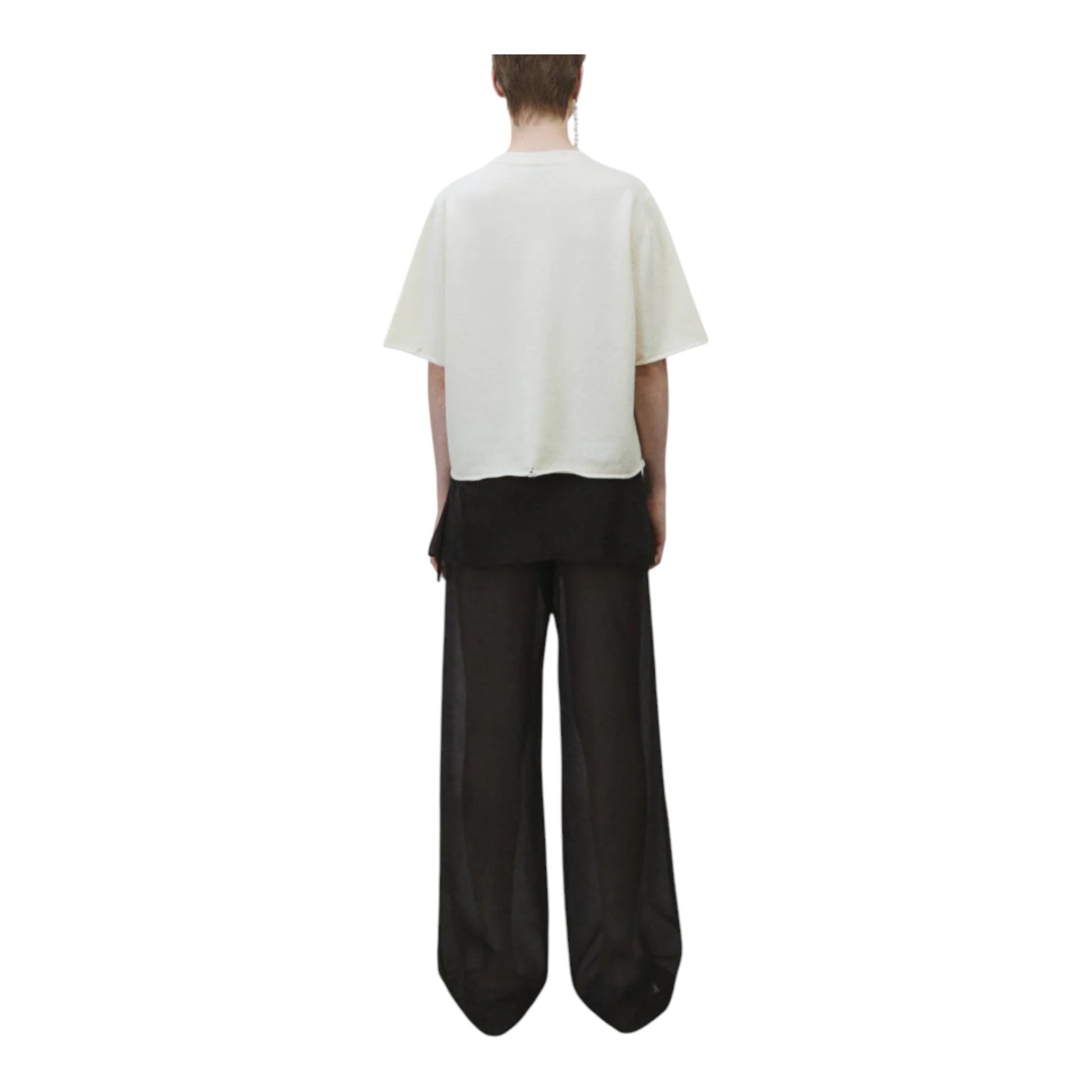襟元と裾に施されたダメージ加工が、こなれたヴィンテージ感を演出。ゆったりとしたシルエットのショートスリーブなので、カットソーや長袖Tシャツと重ね着して、レイヤードスタイルを楽しむのもおすすめです。