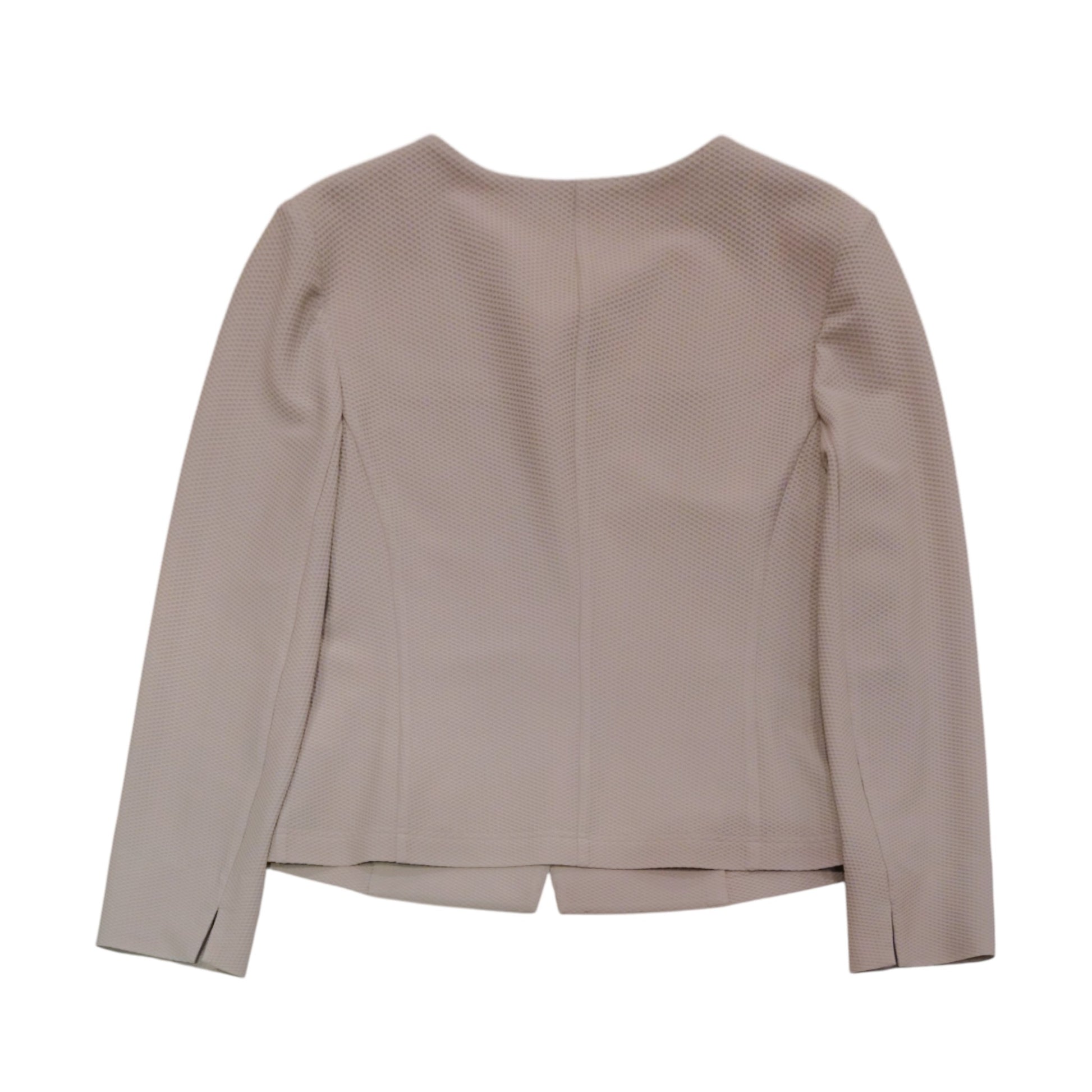 ・視線を奪う、独創的なテクスチャー 細かなメッシュが生み出す奥行きのある表情は、単なるプレーンなジャケットにはない「建築的な美しさ」を放ちます。通気性に優れ、季節を問わず一年中快適に過ごせる、まさにオールシーズン・マスターピースです。