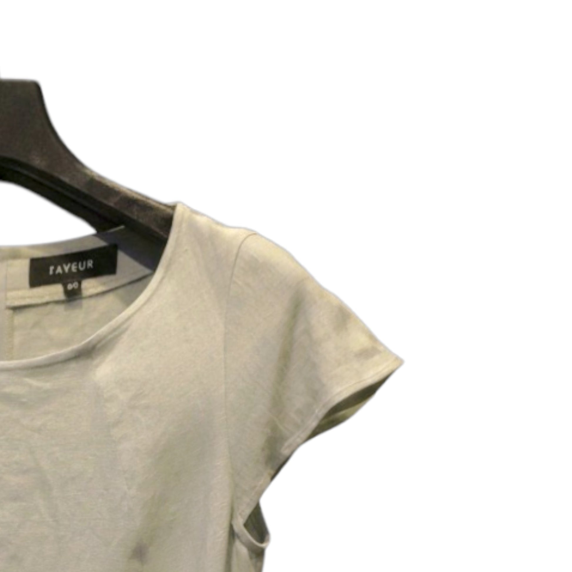 肩を優しく包み込むキャップスリーブと、顔周りを美しく見せるクルーネック。メイド・イン・ジャパンの誇りを感じさせる、細部まで妥協のない仕立ては、まさに「一生もの」と呼ぶにふさわしい一枚です。