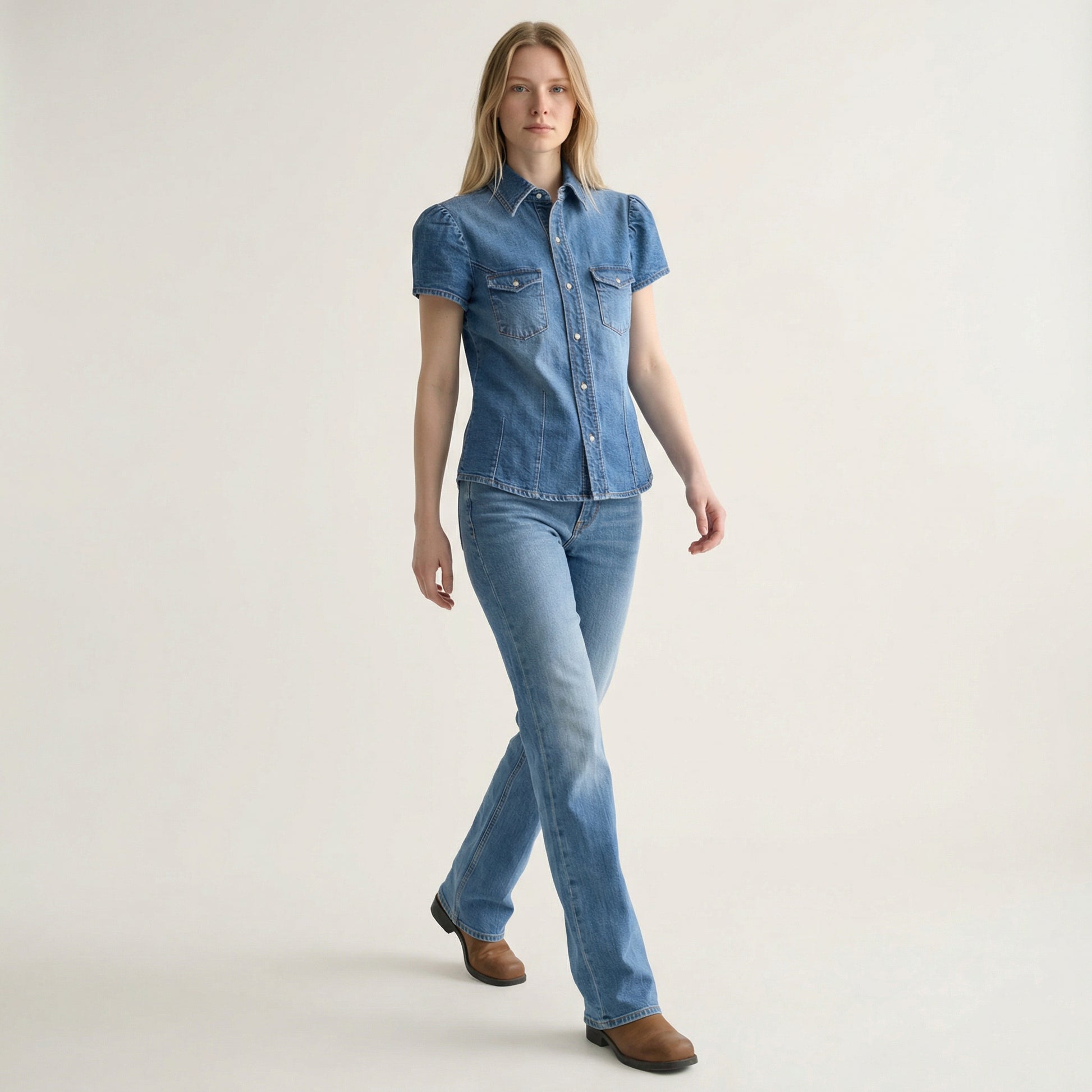 Sculpted Indigo: The Fluted Cap-Sleeve Denim