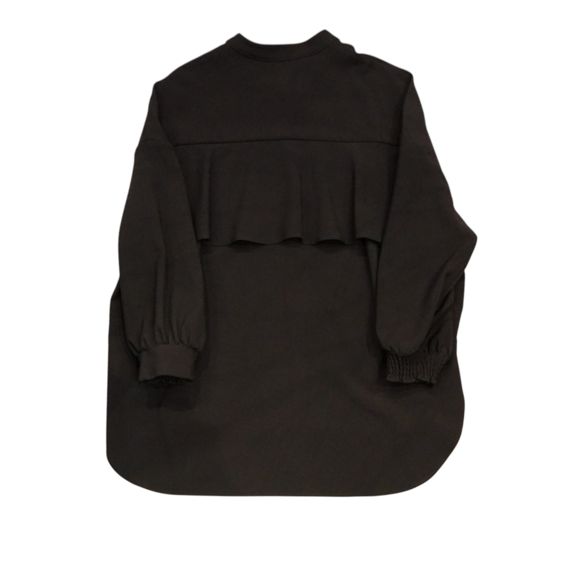 特徴: 丸みのある裾、ギャザー袖口、背面のフリルデザイン