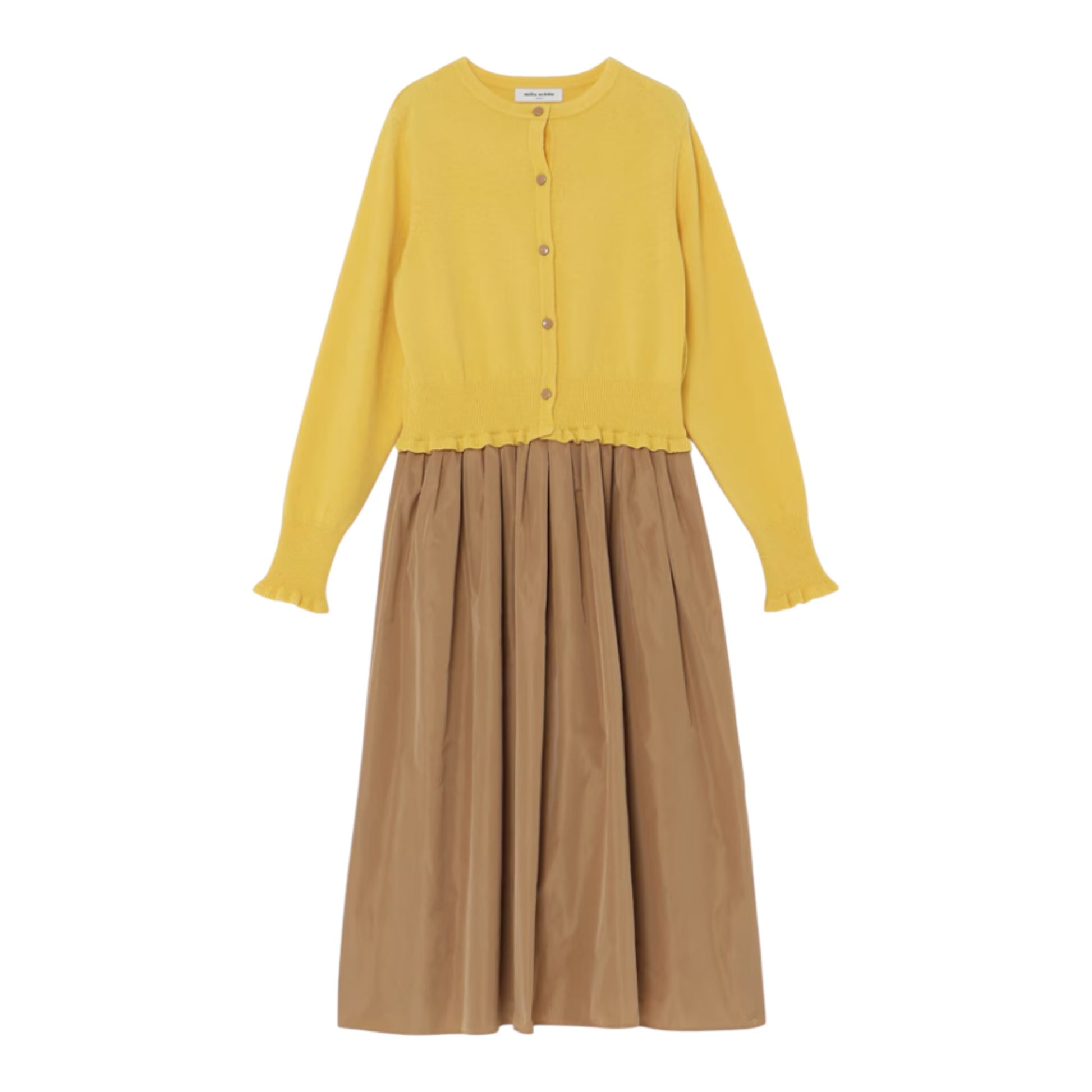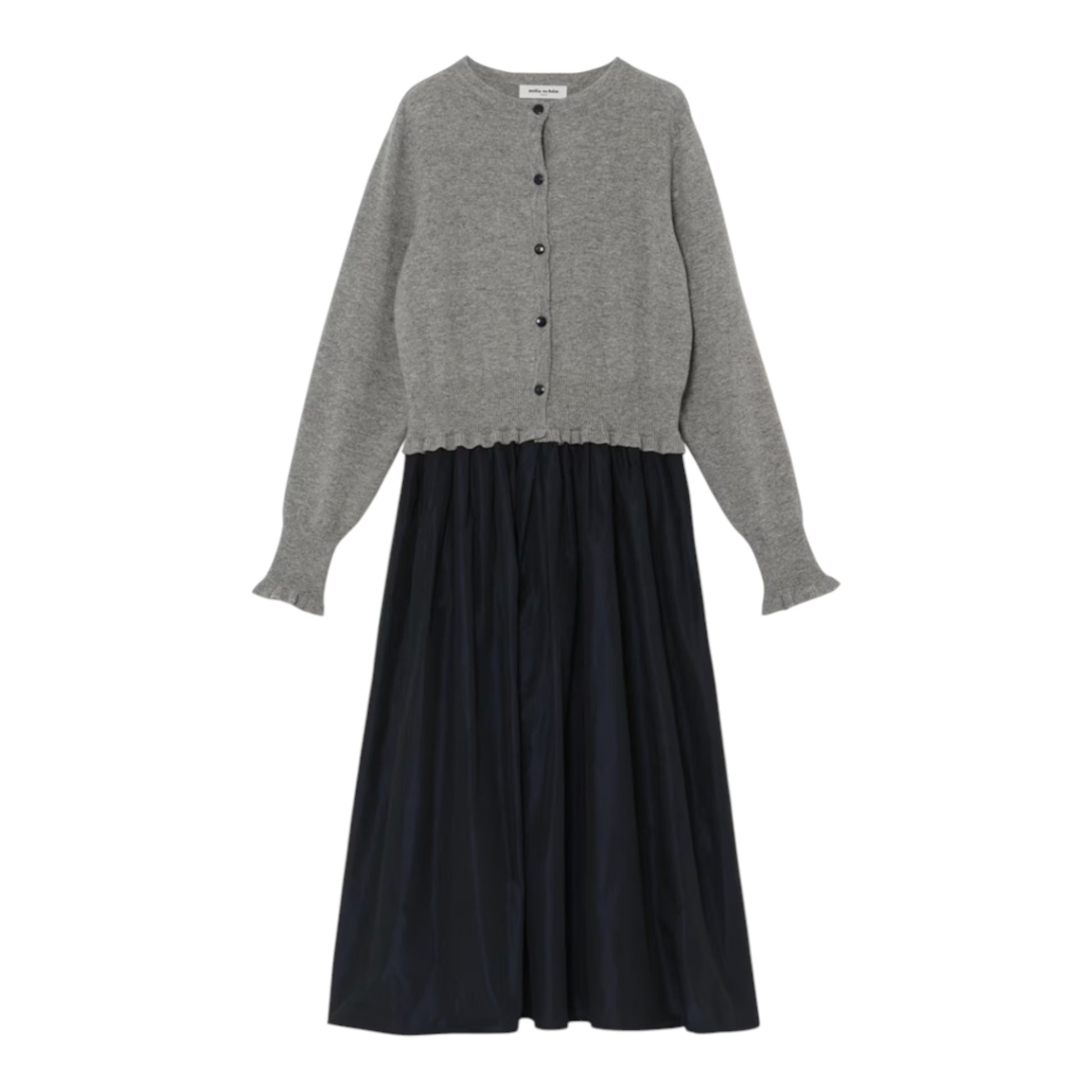 【Mila Schön】メリノウール ニット×タフタ ドッキングワンピース (Made in Japan)