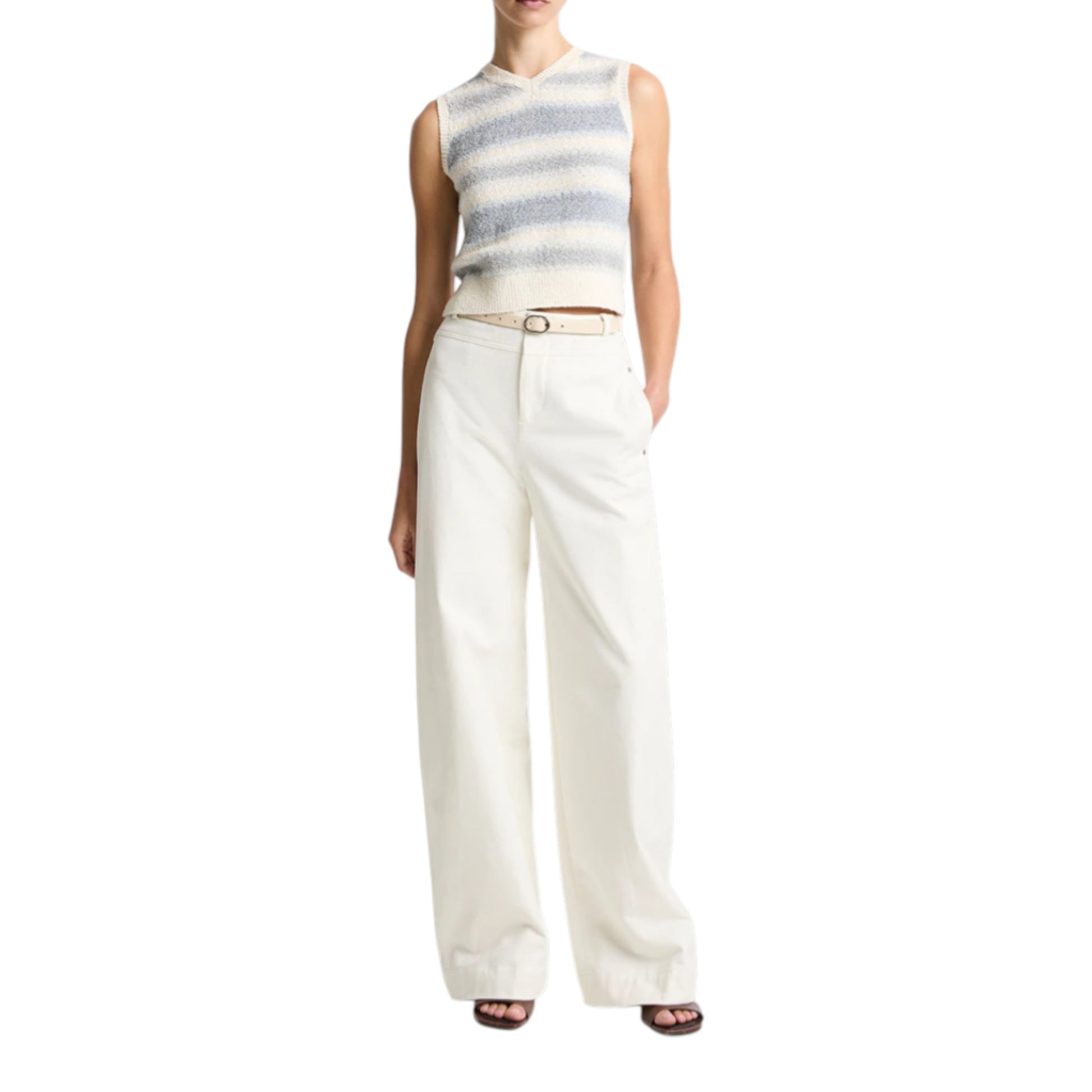 春先には端正な白シャツやTシャツとのトラッドなレイヤードを。気温が上がる季節には、一枚でノースリーブニットとして。シーンに合わせて表情を変える汎用性の高さは、VINCE.ならではの計算されたミニマリズムの証明です。