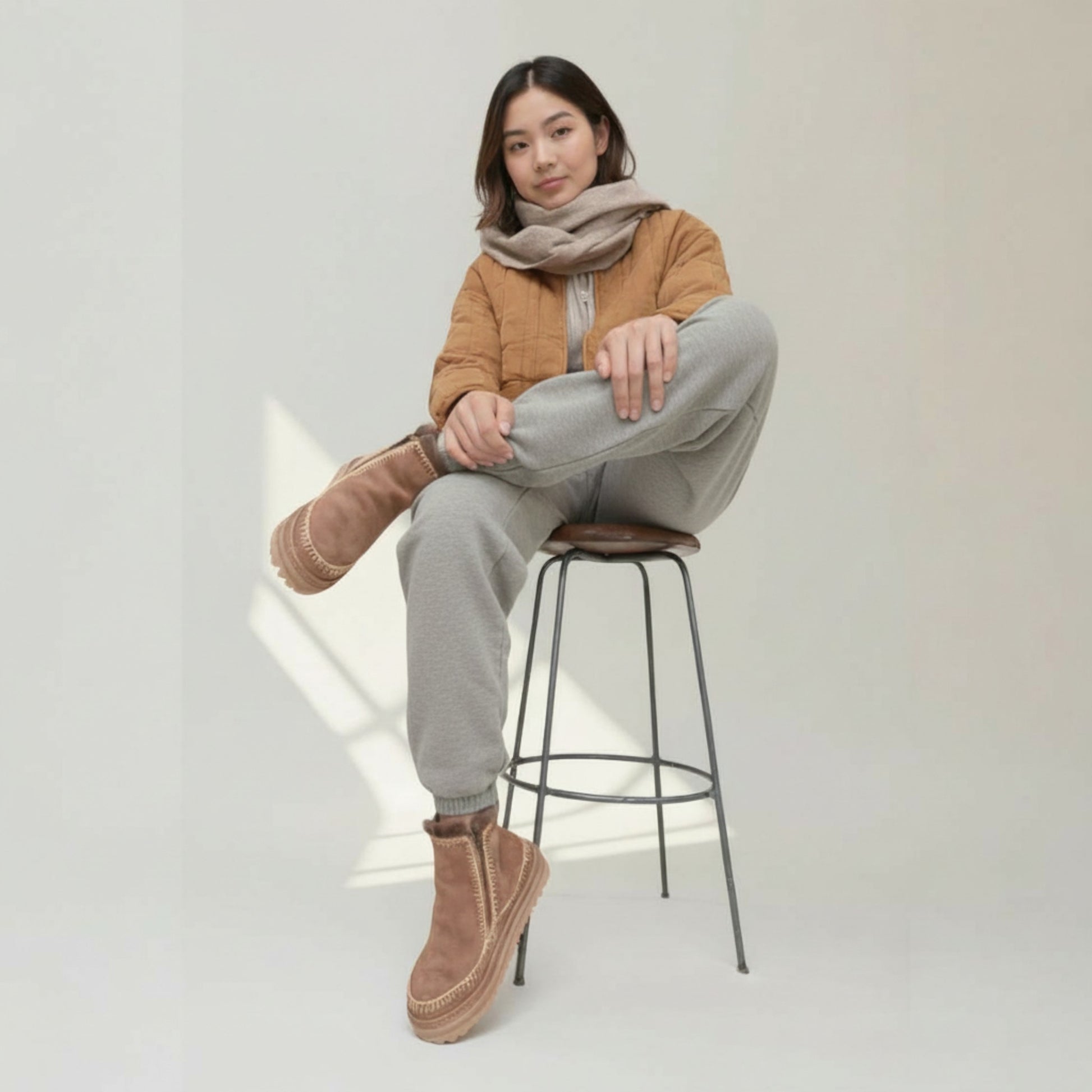 カラーは合わせやすいグレー。軽量で動きやすく、飽きずに長く着られることが、日常使いのワードローブにとって最高の価値となります。
