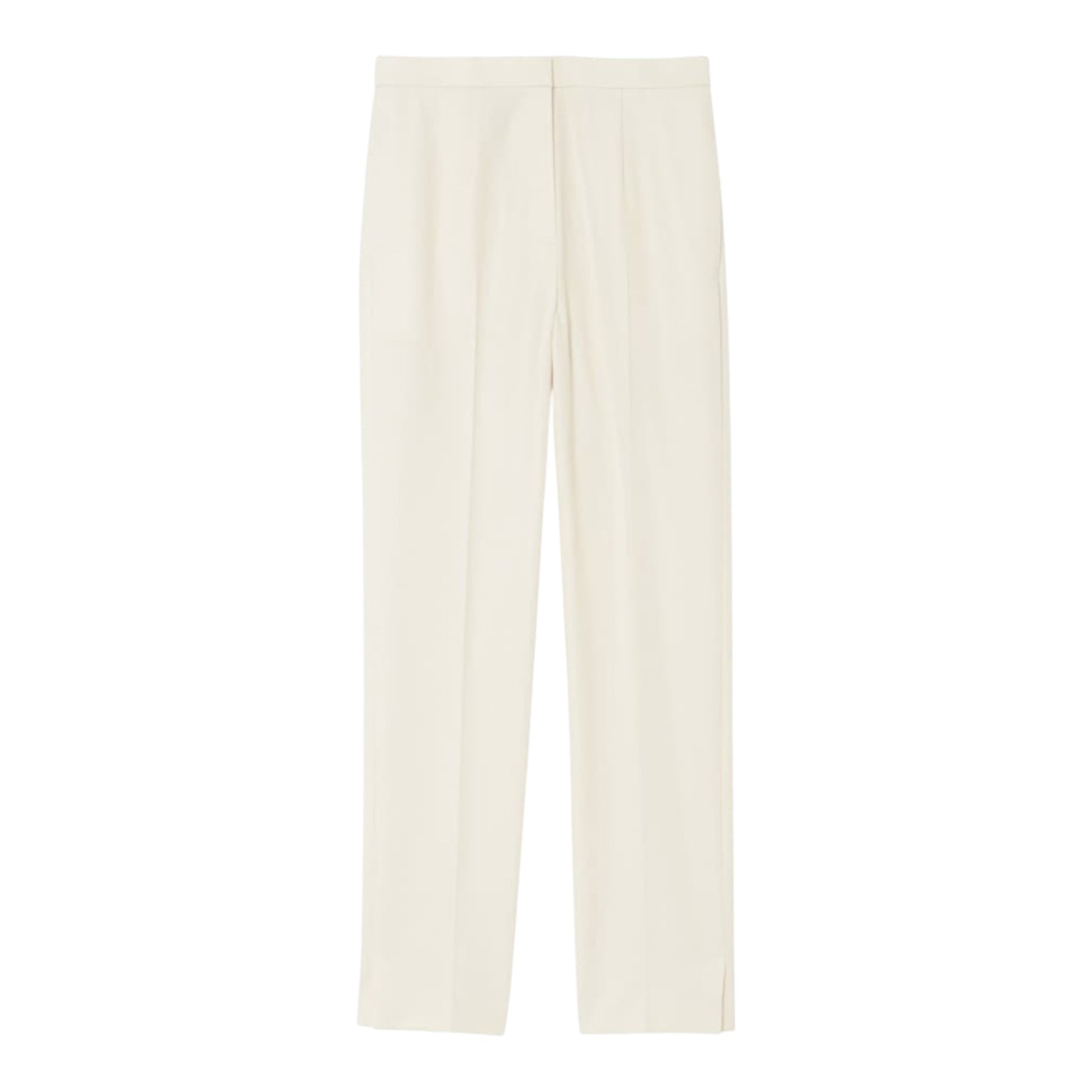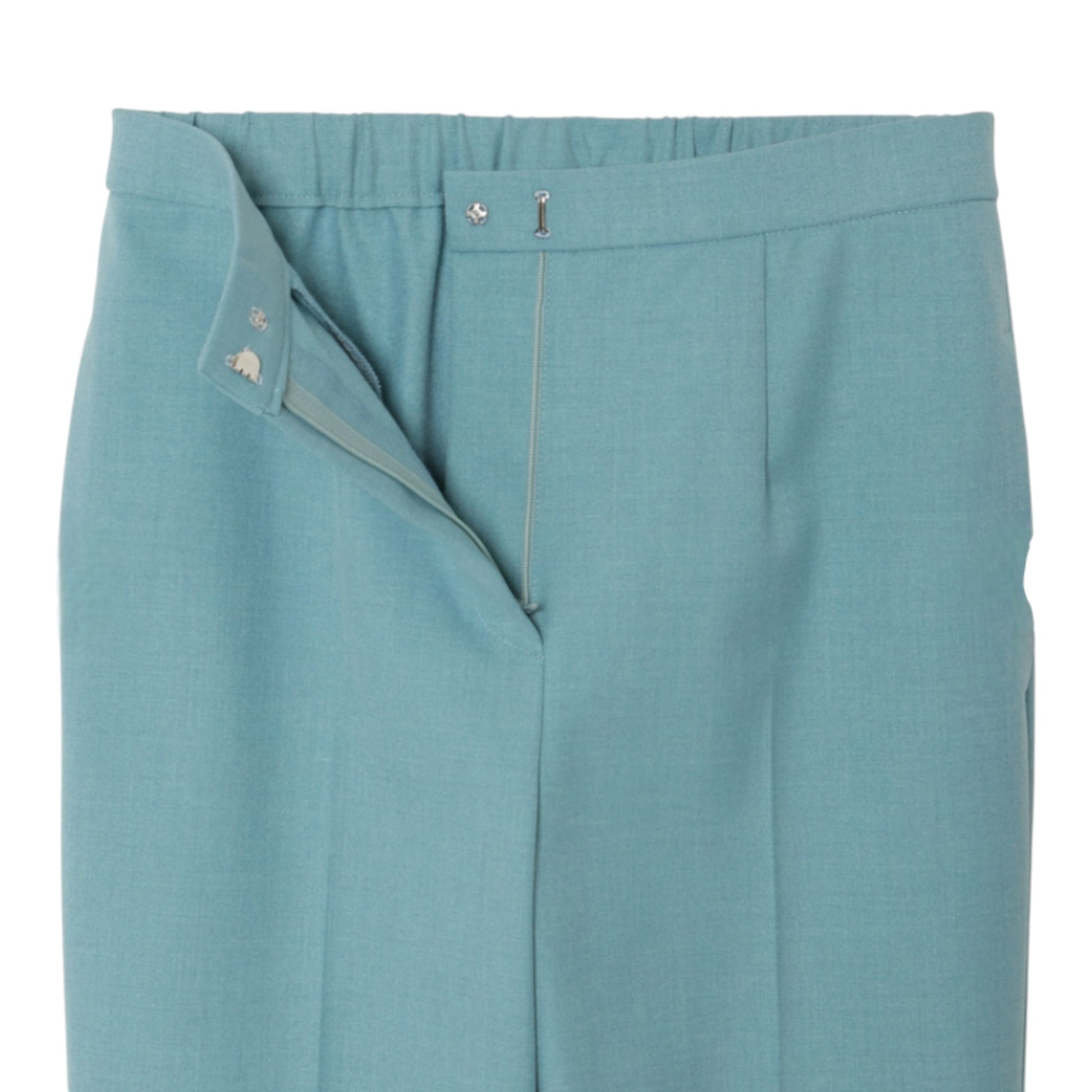 シルエットは、時代を超えて愛されるすっきりとしたストレート。ウエストは、正面からはすっきり見えるデザインでありながら、腰部分だけが伸縮性のあるゴムウエストになっており、見た目の美しさと快適な履き心地を両立しています。