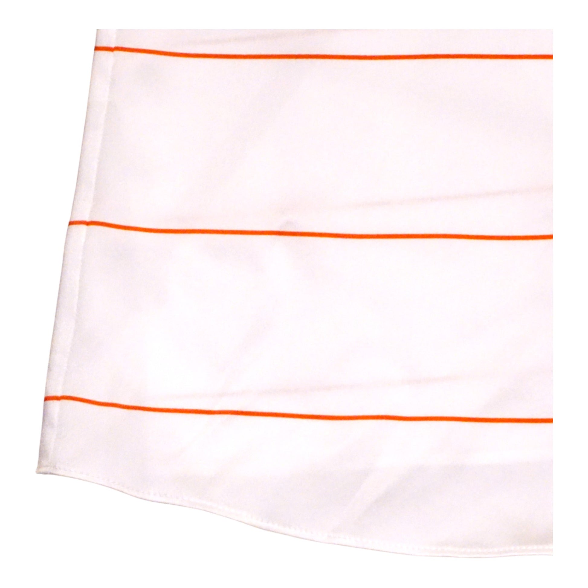 このポロシャツは、滑らかで美しい光沢のある**シルク100%**素材を使用。贅沢な肌触りが、まるで素肌に纏うような心地よさを提供します。襟元は、レーヨン混の異素材で切り替えられており、ストライプ柄とのコントラストがモダンな雰囲気を演出します。