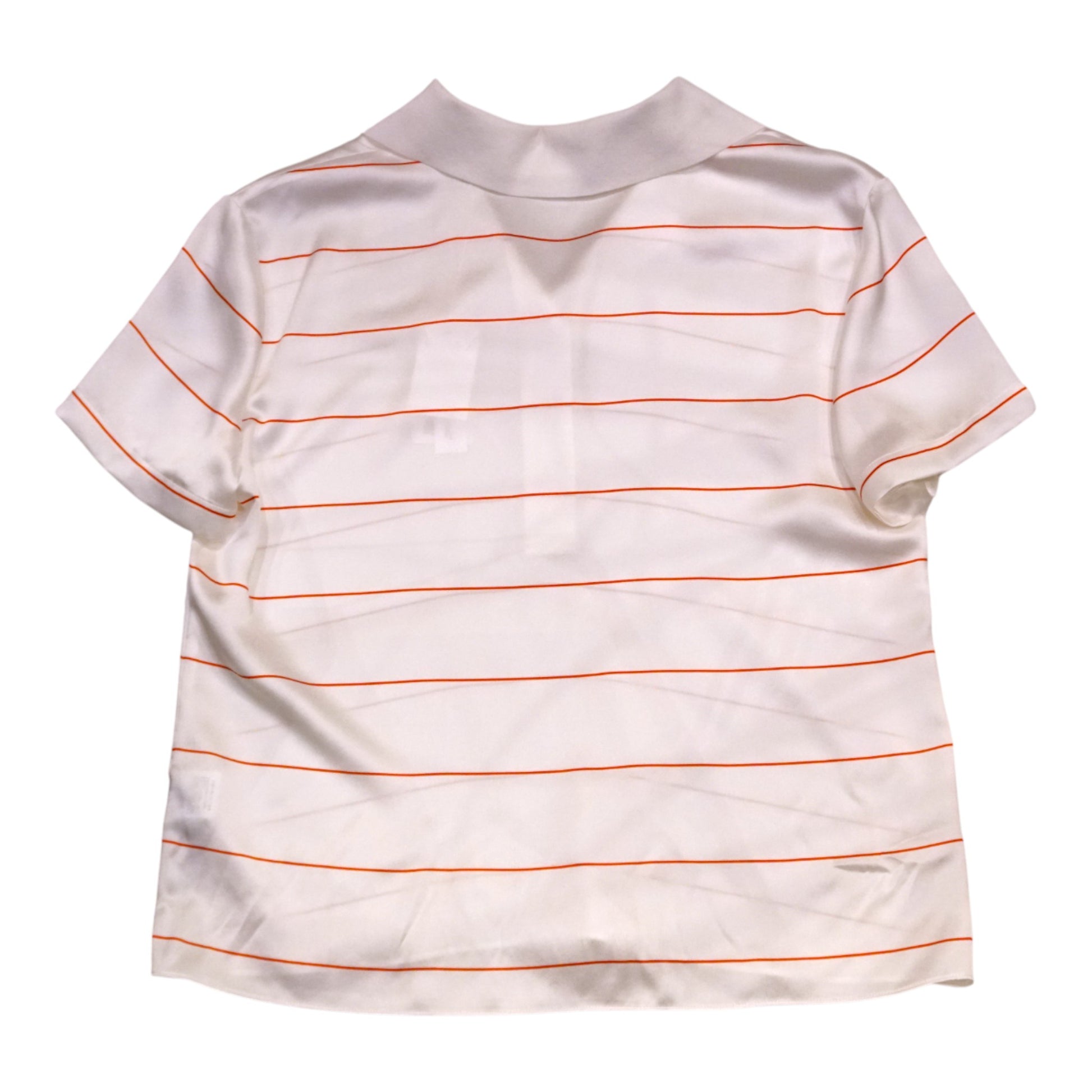 定番のストライプ柄も、シルクの光沢感と相まって、カジュアルすぎない上品な印象に。一枚でさらりと着るのはもちろん、ジャケットのインナーとして、オフィススタイルにも活躍します。